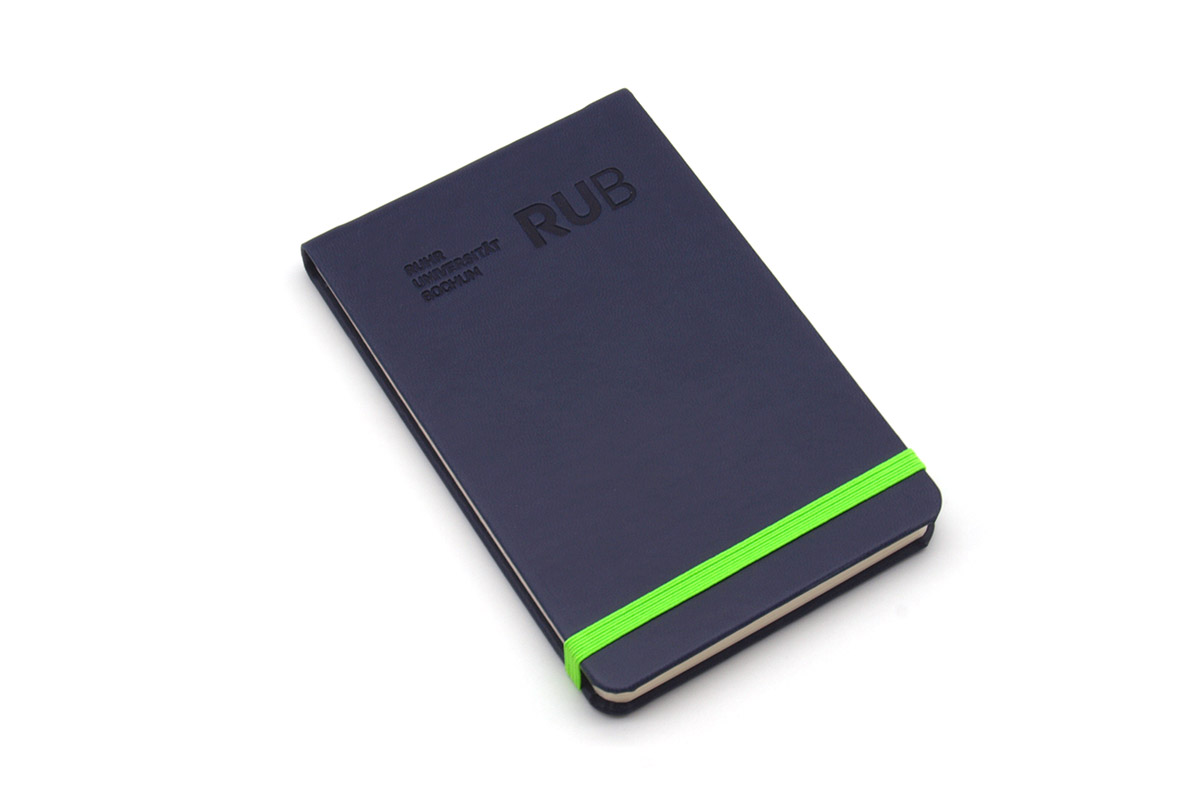 Practical reporter pad with ruled pages - Made in Italy - in plain blue with blind embossing.192 pages, of which 32 pages are perforated, offer enough space for notes and more. The thread sealing keeps the FSC certified sheets together and a green rubber band serves as closure.